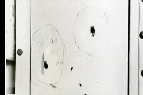 But one bullet was also lost in the ceiling space. And crime scene photos show investigators pointing to bullet holes circled in doorframes and a ceiling panel.